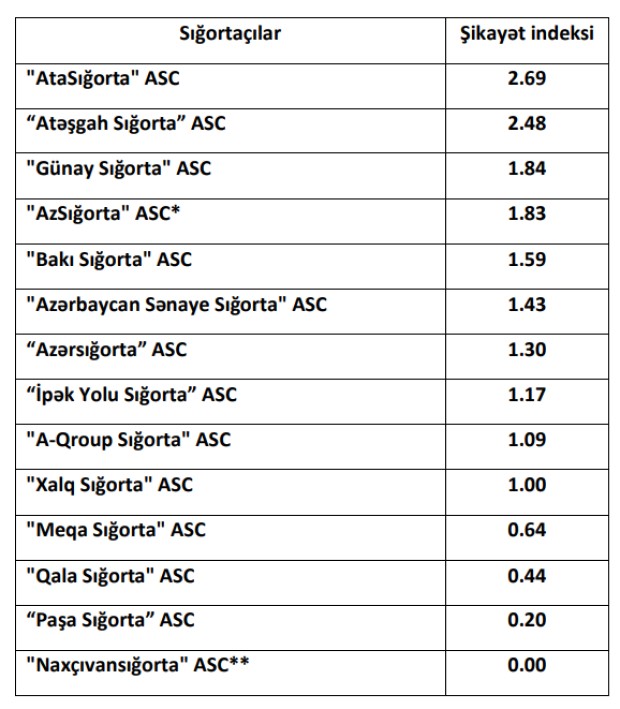 Xidmәt sәviyyәsinin aşağı olduğu sığorta şirkətləri - ŞİKAYƏT İNDEKSİ