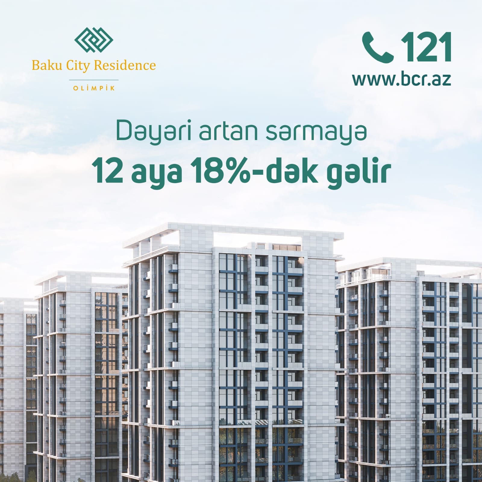Daşınmaz əmlak sahəsinə edəcəyiniz sərmayə 1 il ərzində sizə 18%-dək gəlir gətirə bilər(®) Etibarlı yatırım sahəsi axtarışındasınızsa və pulunuza dəyər qatmaq istəyirsinizsə, “BCR Olimpik” ən ideal təkliflərlə qarşınızdadır!