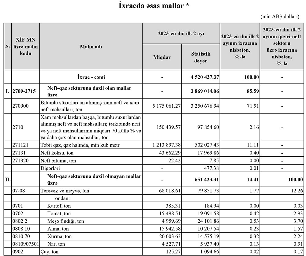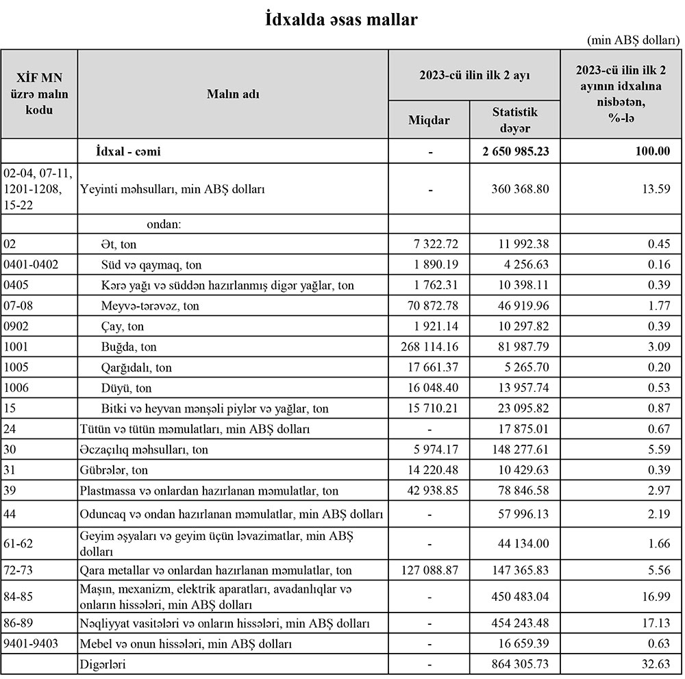 2023-cü ilin yanvar-fevral aylarında Azərbaycanın ən çox ixrac və idxal etdiyi mallar.