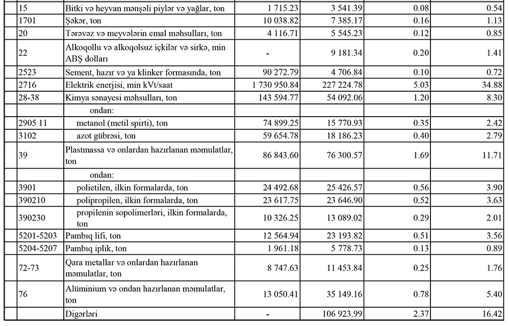 Azərbaycanın ən çox ixrac və idxal etdiyi mallar - YENİ SİYAHI