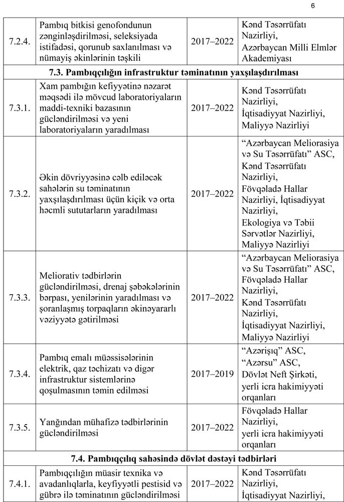 3.2.4. pambıqçılığın infrastruktur təminatının yaxşılaşdırılması;