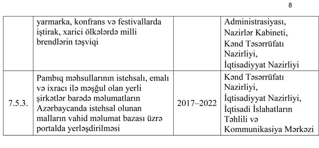 3.2.8. pambıqçılıq məhsullarının rəqabətqabiliyyətliliyinin artırılması;