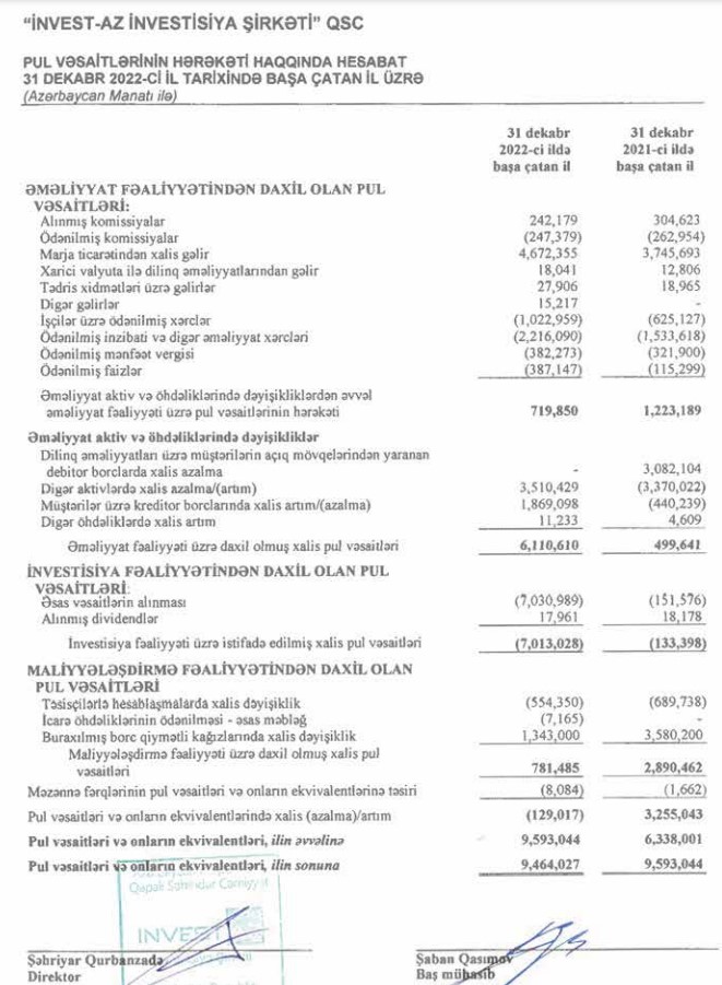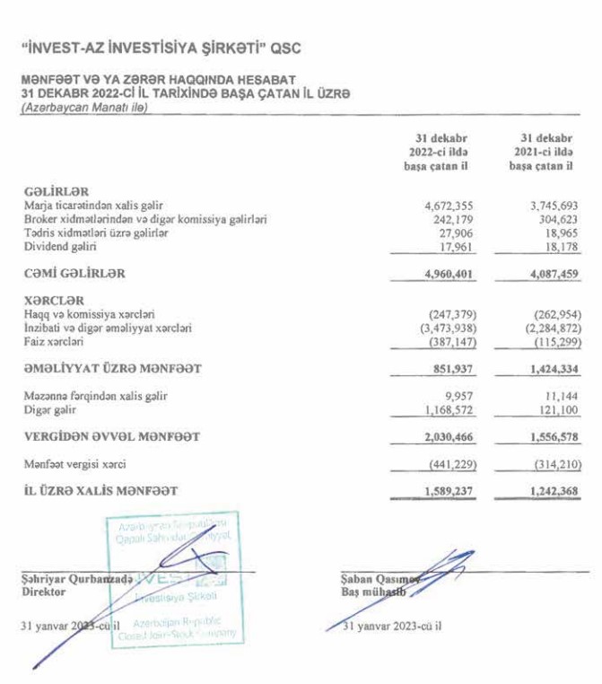 Həmçinin, 2022-ci ildə "İnvest-AZ İnvestisiya Şirkəti" 1 milyon 169 min manat digər gəlirlər əldə edib.