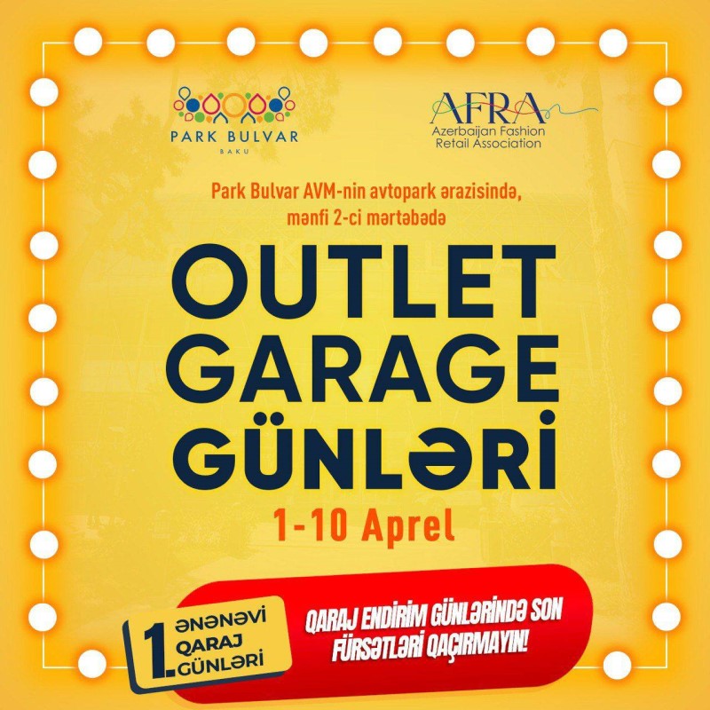 Asossiasiyadan Marja-ya daxil olmuş məlumatda bildirilir ki, “Outlet Qaraj Günləri” 1-10 aprel tarixləri aralığında Park Bulvar AVM-in mənfi 2-ci mərtəbəsində, saat 10:00-dan 22:00-a kimi keçiriləcək. Məşhur brendlər istehlakşıları böyük endirimlərdən yararlanmağa dəvət edir.