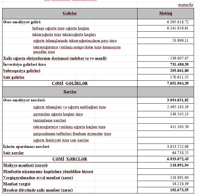 "Bakı Sığorta" ASC 2022-ci ili 102 min 673 manat xalis mənfəət ilə başa vurub. Halbuki Şirkət 2021-ci ili gəlirinin bir hissəsini sığorta ehtiyatına ayırdığı üçün 1 milyon 712 min manat xalis zərər ilə bağlamışdı.
