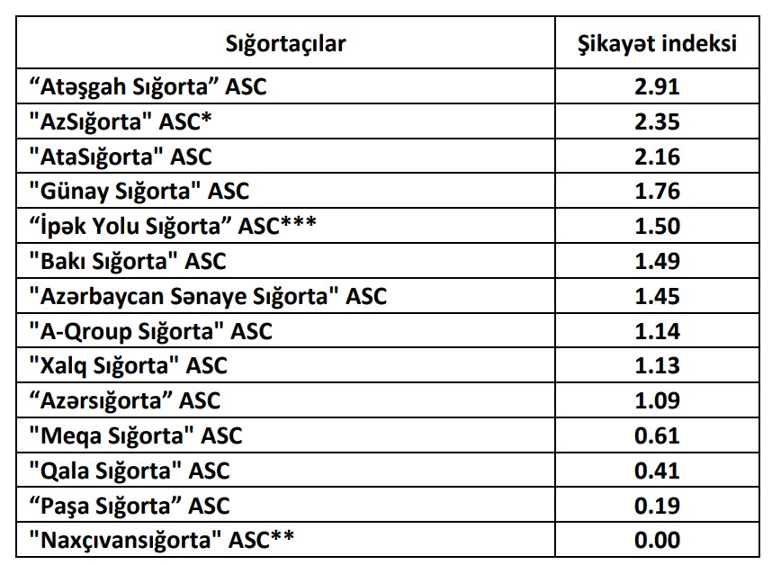 Marja.az İndeksə istinadən xəbər verir ki, xidmətin ən yaxşı olduğu şirkətlər "Naxçıvansığorta" ASC, “PAŞA Sığorta” ASC və "Qala Sığorta" ASC-dir.