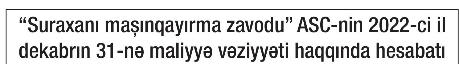 “Suraxanı mașınqayırma zavodu” ASC-nin 2022-ci ili 376 min 384 manat xalis mənfəət ilə başa vurub. Halbuki, ASC 2021-ci ili 284 min 80 manat xalis mənfəət ilə bağlamışdı. Beləliklə, 2021-ci illə müqayisədə 2022-ci ildə “Suraxanı Mașınqayırma Zavodu” ASC-nin xalis mənfəəti 32,5% artıb.