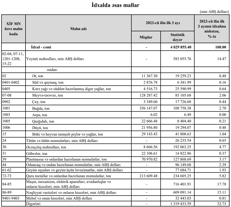 2023-cü ilin yanvar-mart aylarında (1-ci rüb) Azərbaycanın ən çox ixrac və idxal etdiyi mallar.