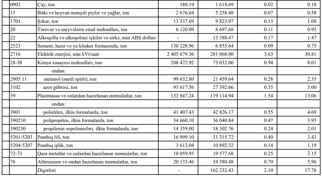 Azərbaycanın ən çox ixrac və idxal etdiyi mallar - YENİ SİYAHI