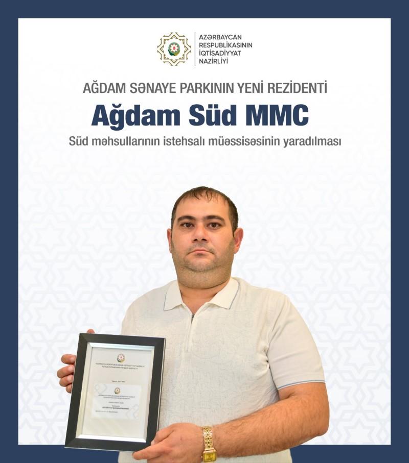Ağdam Sənaye Parkında daha bir sahibkarlıq subyektinə rezident statusu verilib.