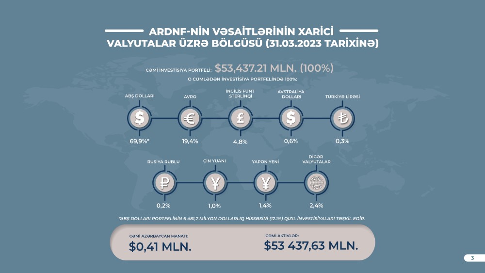 Azərbaycan Respublikası Dövlət Neft Fondu (ARDNF) 2023-cü ilin 1-ci rübü üzrə investisiya fəaliyyətinin yekunlarını açıqalyıb.