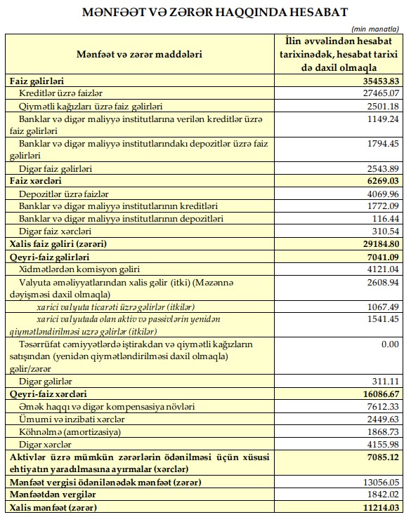 2023-cü ilin ilk rübünün sonuna Bankın xalis mənfəəti 11.2 milyon manat təşkil edib, bu da ötən ilin müvafiq dövrünün sonuna olan göstəricidən 59,8% daha çoxdur.