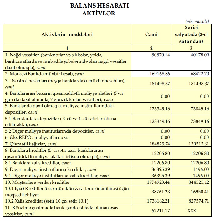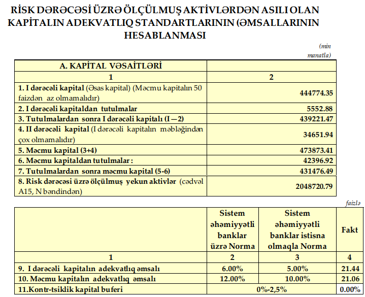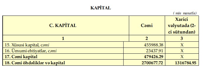 Hesabat dövrünə Bankın cəmi kapitalı 479,4 milyon manat olub.