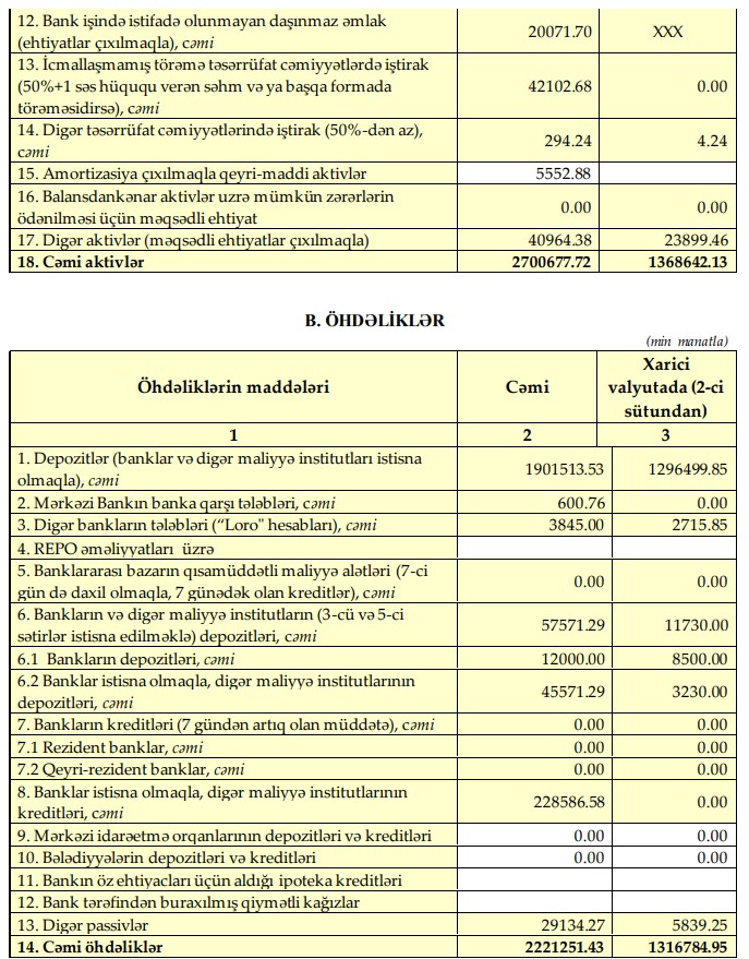 "Beləliklə, əsas maliyyə göstəriciləri: aktivlərinin, kredit portfelinin, banklar və digər maliyyə institutları istisna olmaqla depozitlərin həcminə görə Xalq Bank Azərbaycanın ən böyük özəl banklarının üçlüyündə olan yerini qoruyub saxlamışdır",- məlumatda bildirilir.
