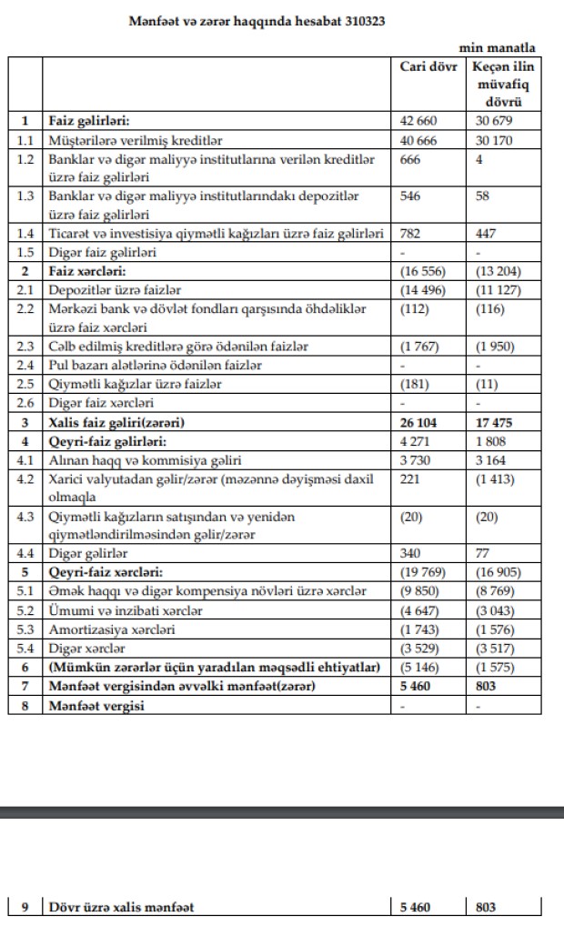 "AccessBank" QSC 2023-cü ilin ilk rübünü 5 milyon 460 min manat xalis mənfəət ilə başa vurub. Bank ötən ilin eyni dövrünü 803 min manat xalis mənfəət ilə bağlamışdı. Beləliklə, "AccessBank"ın xalis mənfəəti 2023-ci ilin 1-ci rübündə 2022-ci ilin 1-ci rübü ilə müqayisədə 6,8 dəfə artıb. Xalis mənfəətin artması gəlirlərin artmasından qaynaqlanır.