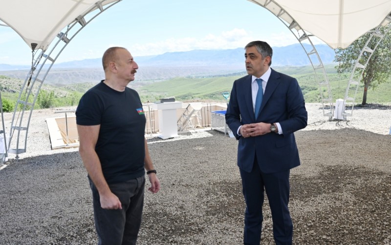 Sonra Prezident İlham Əliyev otel kompleksinin təməlini qoyub.