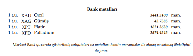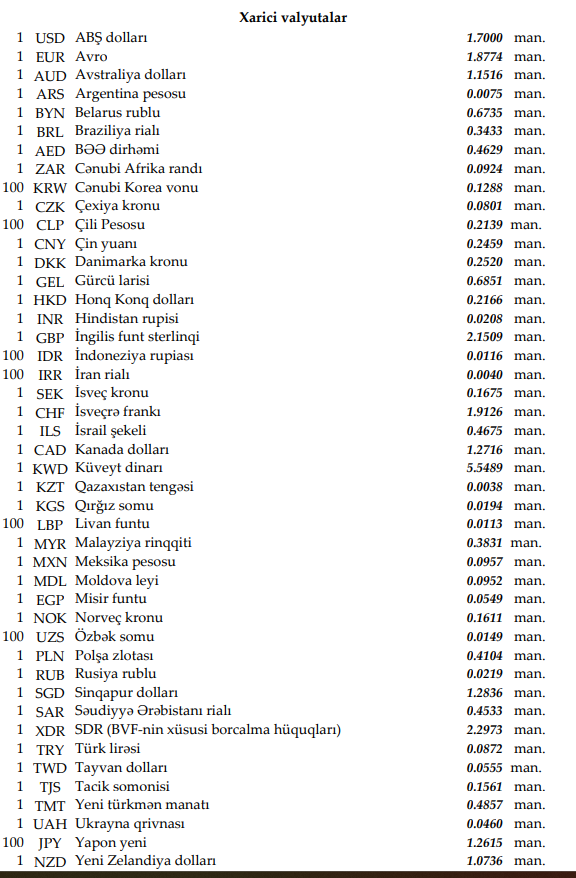 Rəsmi məzənnələr açıqlandı