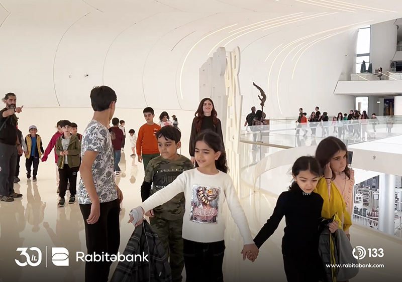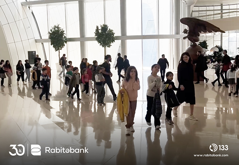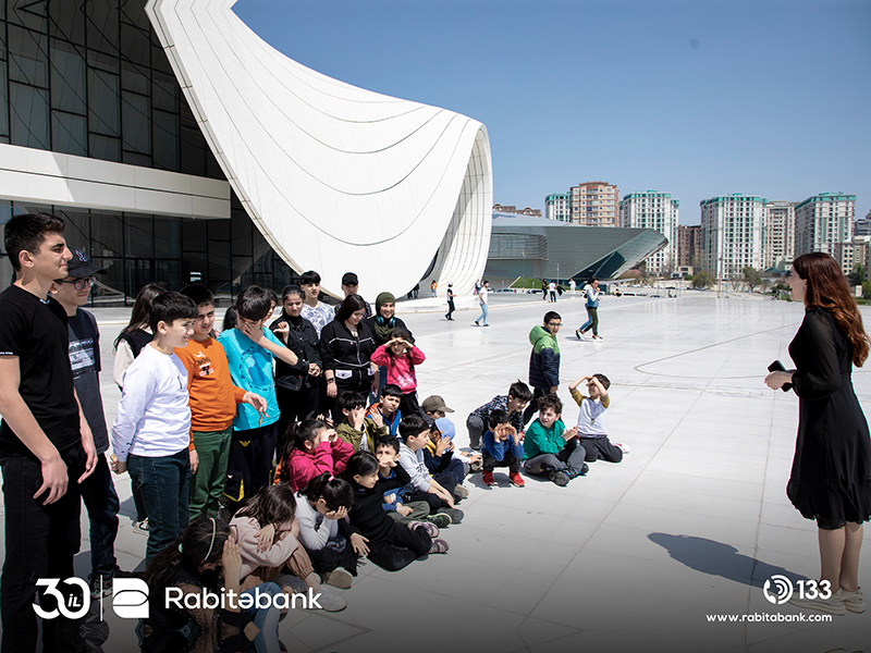Rabitəbank əməkdaşı ilə birgə uşaqlar gəzinti zamanı Heydər Əliyev Mərkəzi ilə yaxından tanış olublar, daha sonra Mərkəzin daxilində yerləşən sərgini gəzib, Ümummilli Lider Heydər Əliyevin həyatı haqqında maraqlı faktları öyrəniblər.