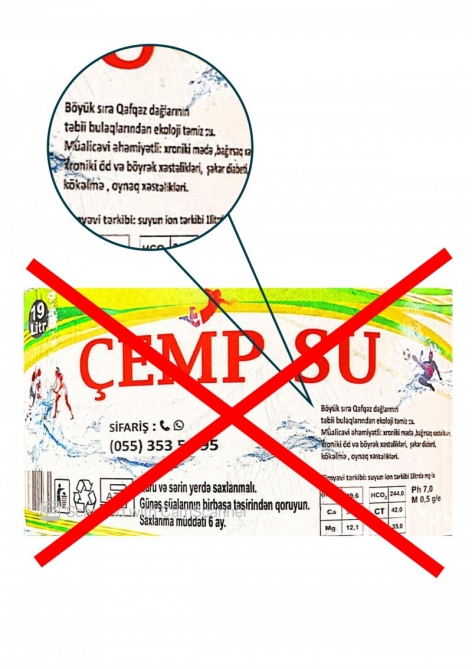 Yoxlama zamanı müəssisədə qablaşdırılan “ÇEMP Su” əmtəə nişanlı suların etiket məlumatlarında suyun mənbəyinin “Böyük Qafqaz sıra dağlarının bulaqlarından ekoloji təmiz su”dan əldə edildiyi qeyd olunsa da, mərkəzləşdirilmiş su sistemindən gələn suları filtr etməklə qablaşdırıldığı müəyyən edilib. Eyni zamanda, müəssisənin qida sahəsində normativ-hüquqi aktların tələblərinə cavab vermədiyi, qanunvericiliyə zidd olaraq məhsulların üzərində “müalicəvi” sözünün qeyd olunduğu, ehtiyat su çəninin, filtrlərin, qablaşdırma avadanlığının müvafiq qaydalara uyğun təmizlənməsi, mexaniki filtrlərin, kömür və qum filtrlərinin dəyişilməsi ilə bağlı qeydiyyatın aparılmasına dair təsdiqedici sənədlərin olmadığı, qida məhsulları ilə təmasda olan avadanlıqların yuyulması üçün nəzərdə tutulmayan kimyəvi maddədən istifadə edildiyi aşkarlanıb.