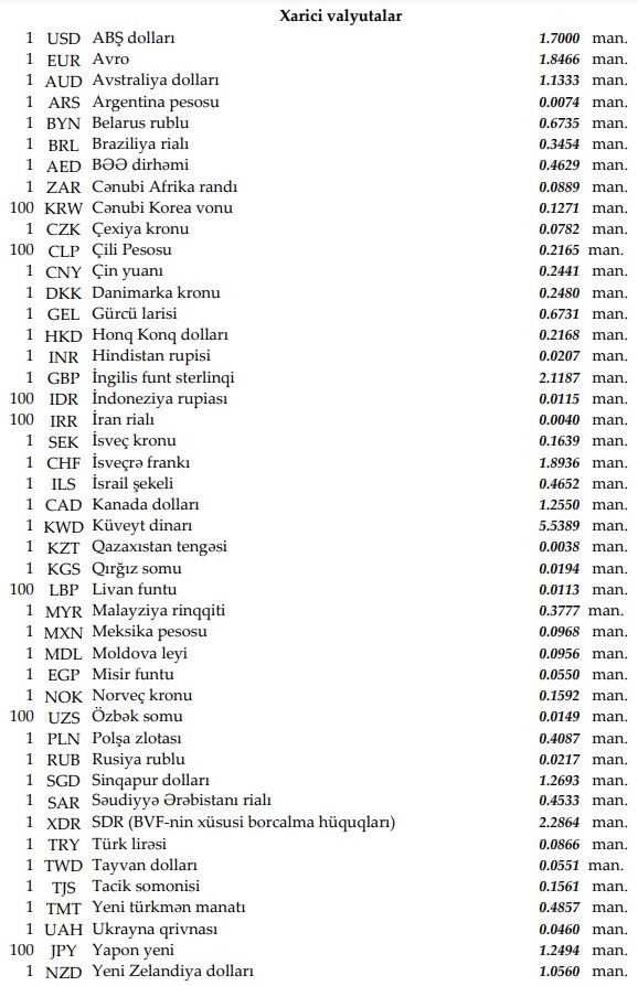 Azərbaycan Respublikasının Mərkəzi Bankının 15.05.2023 -cü il tarixindən etibarən xarici valyutaların və bank metallarının Azərbaycan manatına qarşı RƏSMİ MƏZƏNNƏLƏRİ BÜLLETENİ