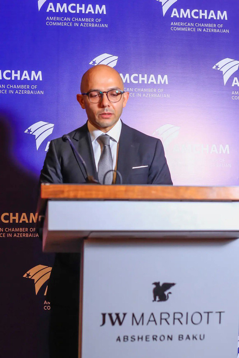 (®) 11 may 2023-cü il tarixində Azərbaycandakı Amerika Ticarət Palatası (AmCham Azərbaycan) tərəfindən Azərbaycan Respublikası Mərkəzi Bankının (ARMB) Sədri, cənab Taleh Kazımovun iştirakı ilə “AmCham” üzvlərinin görüşü (Members’ May Luncheon) keçirilib.