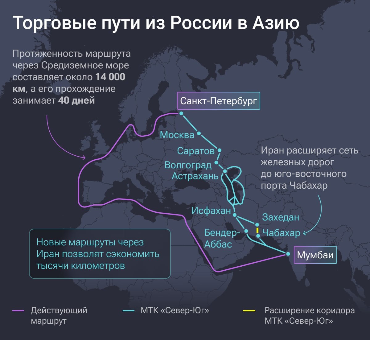 Marja.az Rusiya mətbuatına istinadən xəbər verir ki, Rusiyanın Sankt-Peterburq şəhərindən Hindastanın Mumbay şəhərinə malların çatdırılması təxminən 10 gün çəkəcək. Müqayisə üçün qeyd edək ki, indi müddət 30-45 günə qədərdir.