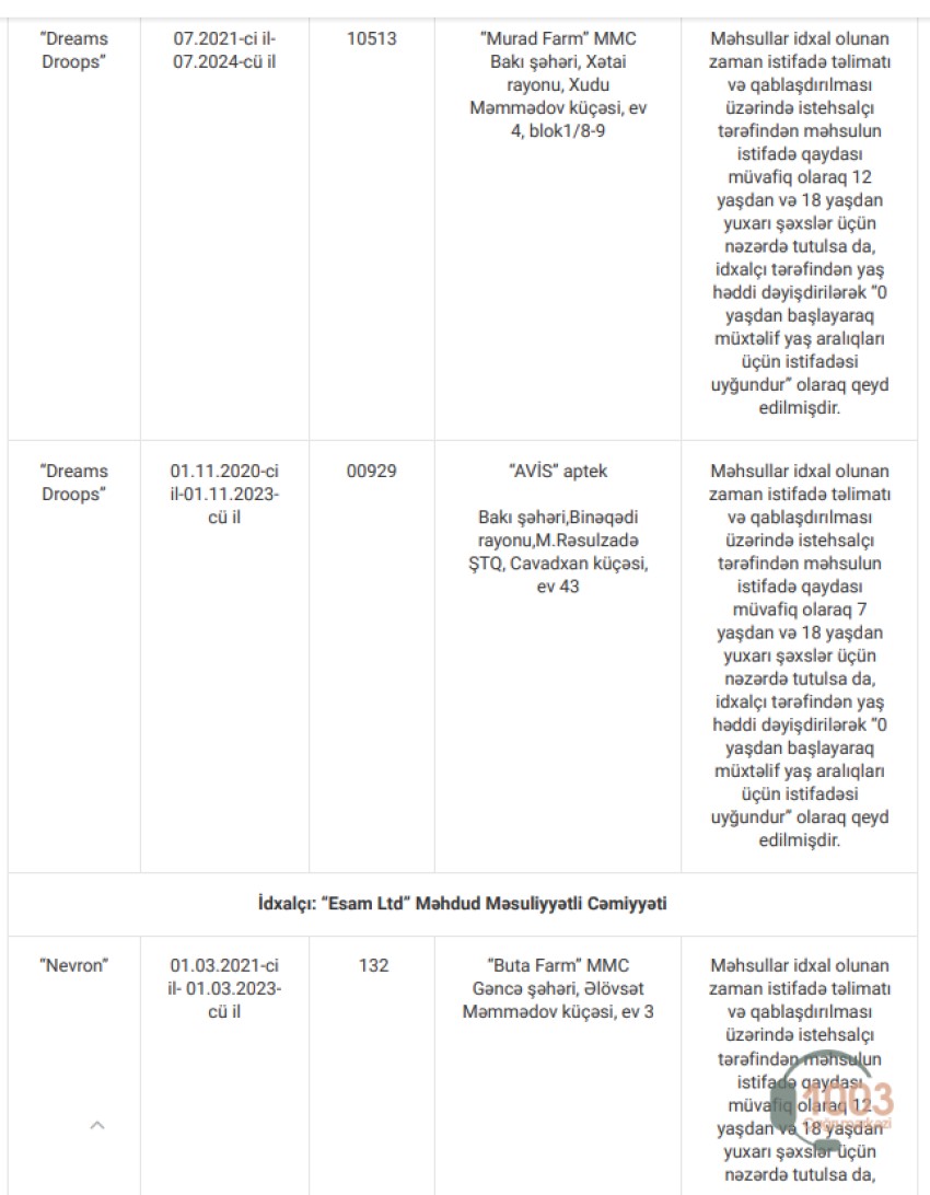 Eyni zamanda, nəzarət tədbirləri zamanı bir sıra idxalçılar tərəfindən ölkəyə gətirdikləri bioloji aktiv qida məhsullarına qida təhlükəsizliyi sertifikatı aldıqdan sonra etiketində qanunvericiliyə zidd olaraq müvafiq dəyişikliklər edildiyi müəyyən olunub. Belə ki, istifadə təlimatında qanunvericiliyin tələbləri pozularaq “Nes Group” MMC və “Esam Ltd” MMC tərəfindən idxal edilən müvafiq məhsulların müxtəlif xəstəliklərin kompleks müalicəsində və proflaktikasında istifadə olunan preparat kimi qeyd edildiyi aşkarlanıb. Həmçinin yaşı 7, 12 və 18-dən yuxarı olan şəxslər üçün nəzərdə tutulan bəzi məhsulların istifadə təlimatında və qablaşdırılması üzərində dəyişikliklər edilərək, “0 yaşdan başlayaraq müxtəlif yaş aralıqları üçün istifadəsi uyğundur” yazıldığı aşkar olunub.