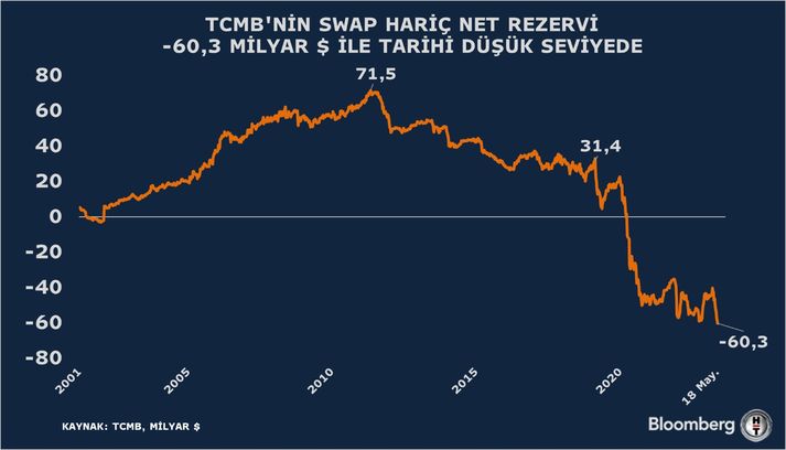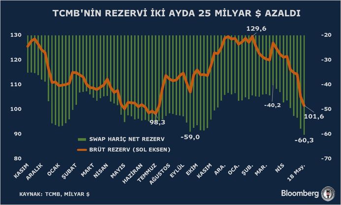 Digər tərəfdən, xalis ehtiyatlar tarixən aşağı səviyyədədir. TCMB-nin xalis ehtiyatları mənfi 0,2 milyard dollara qədər azalıb. Beləliklə, 21 ildə ilk dəfə olaraq xalis ehtiyatlar mənfi zonaya keçib.