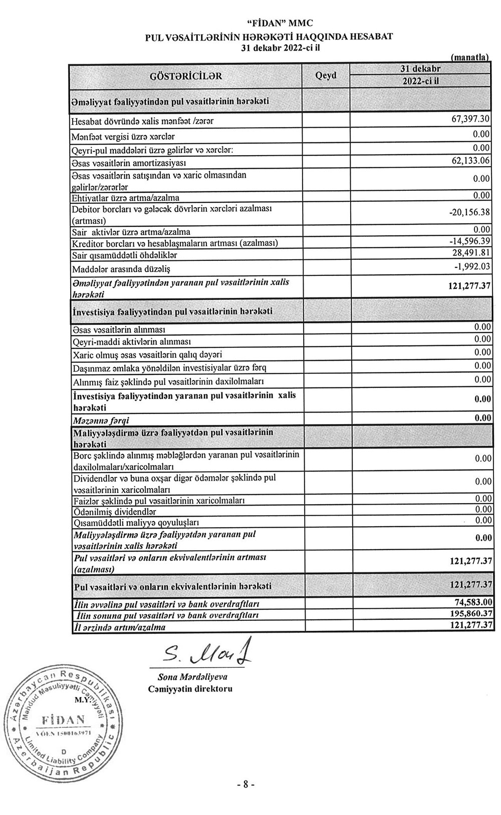 "FİDAN" MMC 2022-ci ili 67 min 397 manat xalis mənfəət ilə başa vurub.