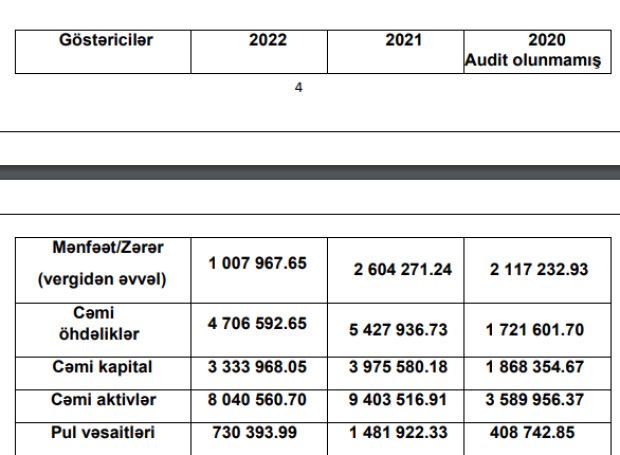 Ötən il Şirkətin cəmi kapitalı 642 min manat azalaraq 3 milyon 334 min manata, cəmi öhdəlikləri isə 721 min manat azalaraq 4 milyon 706 min manata geriləyib.