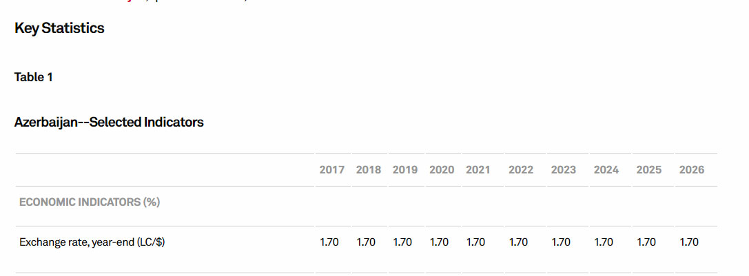 "Biz güman edirik ki, ABŞ Dolları/Azərbaycan manatı məzənnəsi 1,70 səviyyəsində sabit saxlanılacaq. Bu, rəsmi orqanların xarici valyuta bazarına müntəzəm müdaxilələri ilə dəstəklənir. Buna baxmayaraq, bizim fikrimizcə, karbohidrogen (neft və qaz) qiymətləri kəskin şəkildə aşağı düşərsə və uzun müddət aşağı qalarsa, Azərbaycan rəsmiləri məzənnəyə düzəlişlər etməyi düşünə bilər. Bu, Mərkəzi Bankın 2015-ci ildəki tədbirləri kimi xarici valyuta buferlərinin əhəmiyyətli dərəcədə itkisinin qarşısını almağa kömək edəcək",- “S&P Global Ratings” bildirib.