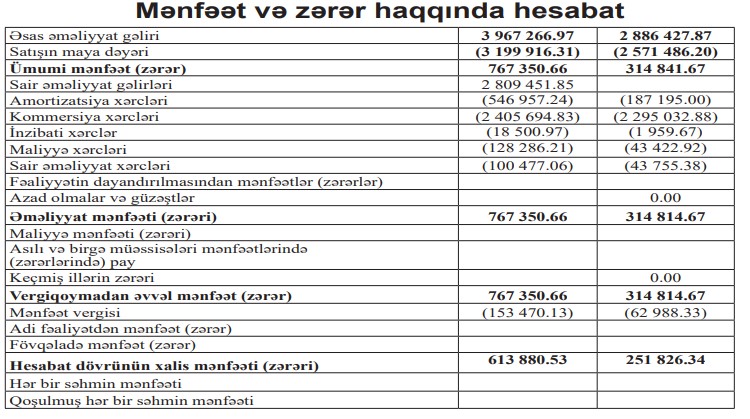 Şirkət 2020-ci ildə 102 min manat xalis mənfəət əldə etmişdi.