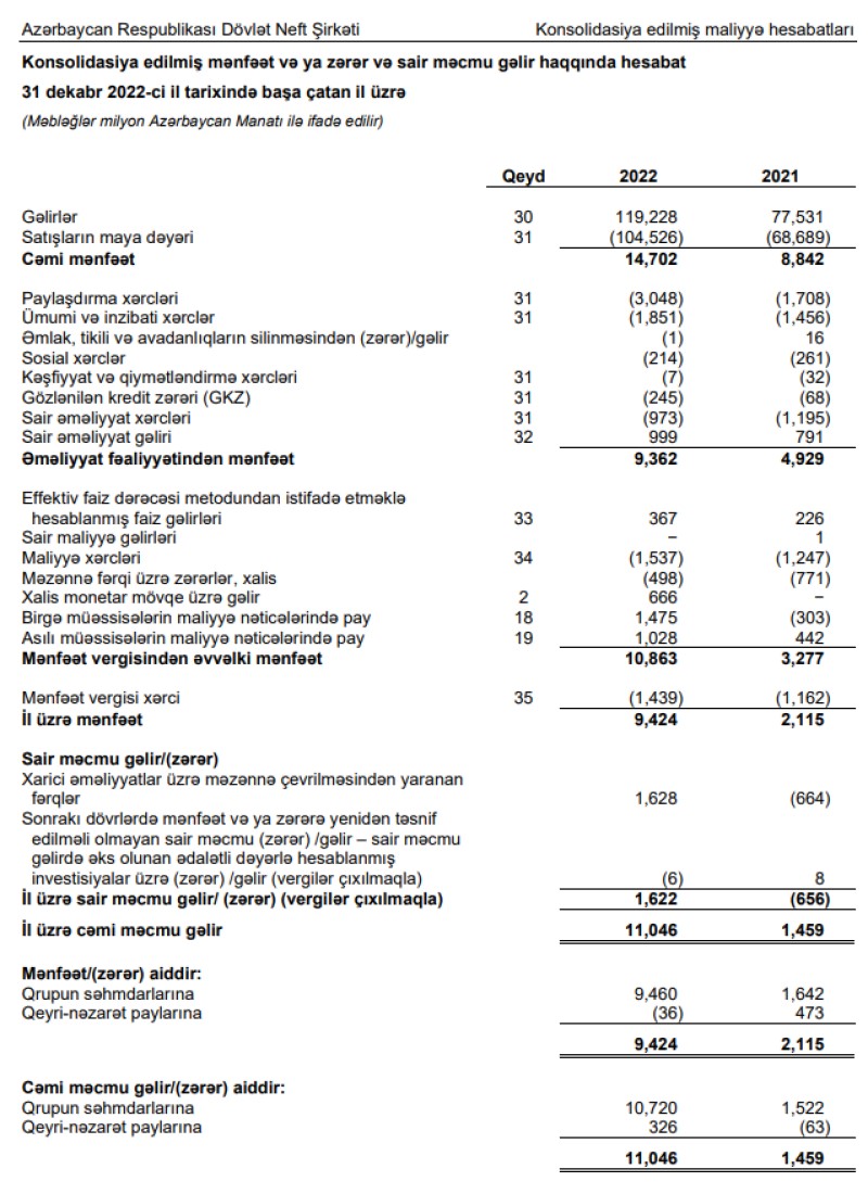 Marja.az Azərbaycanın ən böyük şirkəti olan SOCARı-ın 31 dekabr 2022-ci il tarixində başa çatan il üzrə konsolidasiya edilmiş hesabatına istinadən xəbər verir ki, ötən il Şirkətin İsveçrədə gəlirləri 33 milyard 22 milyon manat və ya 74%, Türkiyədə 6 milyard 701 milyon manat və ya 38%, Azərbaycanda 3 milyard 267 milyon manat və ya 41,8%, Gürcüstanda 385 milyon manat və ya 31% artıb, Birləşmiş Ərəb Əmirliklərində 1 milyard 40 milyon manat və ya 54,8%, digər ölkələrdə isə 638 milyon manat və ya 19% azalıb.