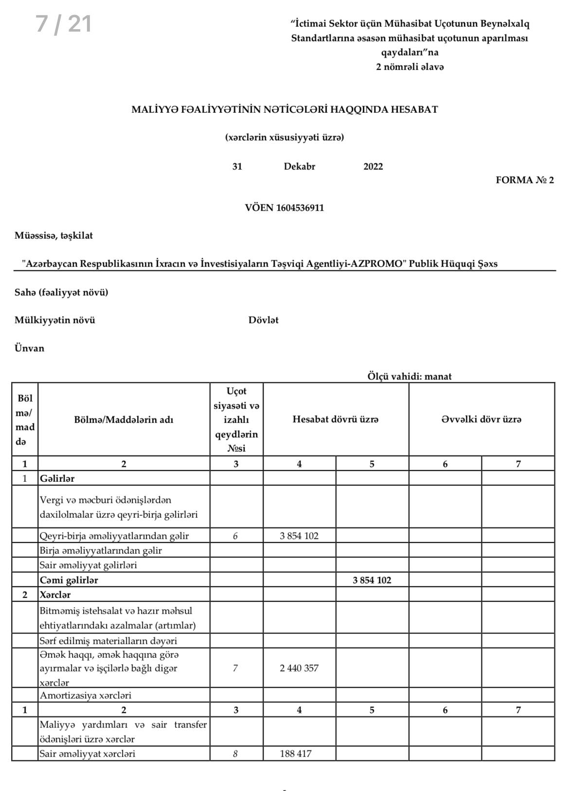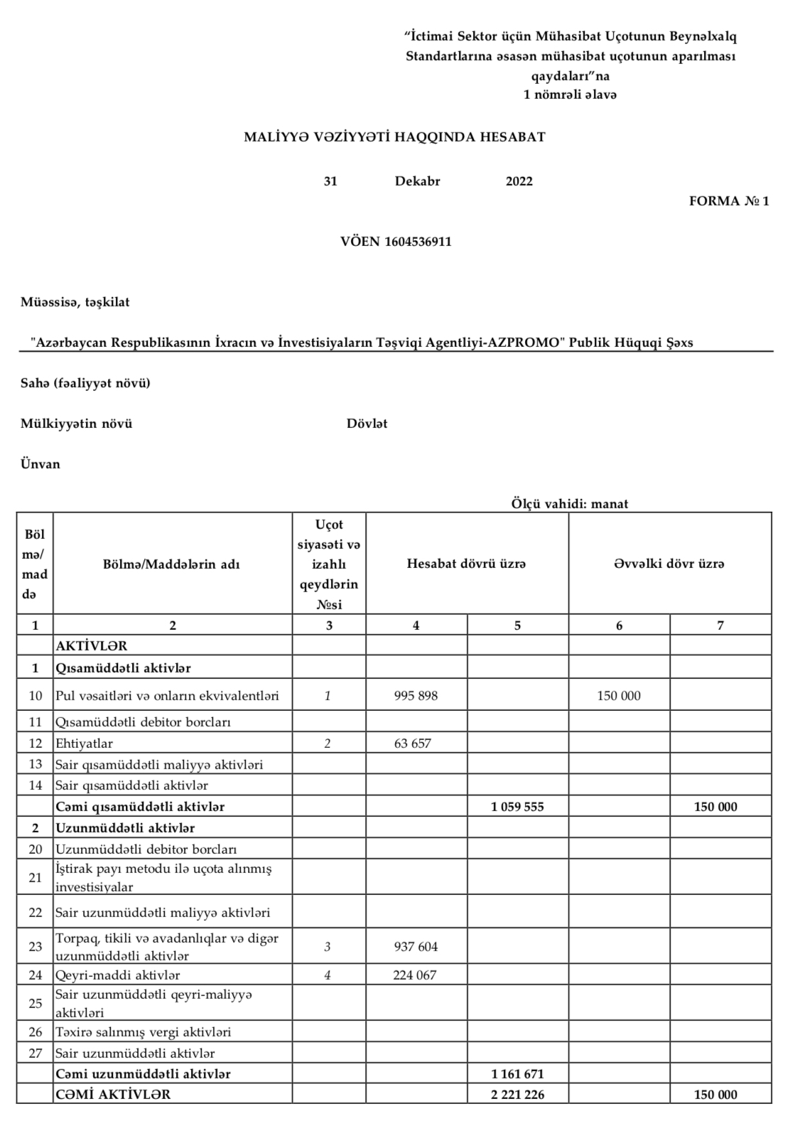 İxracın və İnvestisiyaların Təşviqi Agentliyi (AZPROMO) 2022-ci ili 1 milyon 225 min manat mənfəətlə (kapital qalığı) başa vurub.