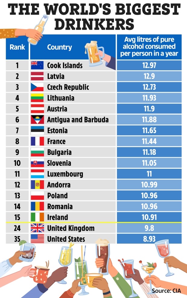 Dünyada ən çox içki içilən ölkələrin siyahısı açıqlanıb.