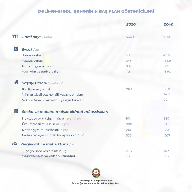Komitənin yaydığı məlumatda bildirilir ki, Dəliməmmədli yaşayış məntəqəsi 1991-ci ildə şəhər statusu alıb. Dəliməmmədlinin ilk Baş planı 1981-ci ildə işlənilmişdir. Təsdiq olunmuş yeni sənəd şəhərin 2-ci Baş planıdır. Şəhərin ümumi sahəsi 411,5 ha, əhalisi isə 5,6 min nəfər təşkil edir.