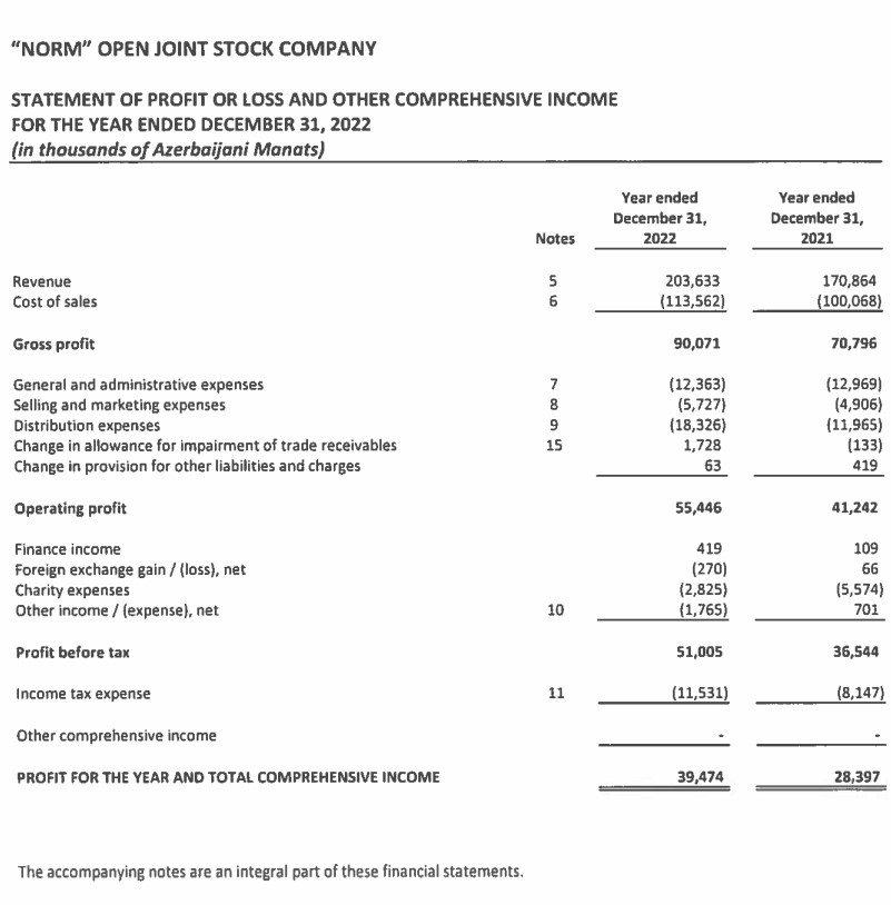 “Norm” ASC-nin ümumi gəliri 2022-ci ildə 27% artıb“Norm” ASC 2022-ci ilin audit olunmuş maliyyə nəticələrini açıqlayıb. Şirkət 2022-ci ili 39 milyon 474 min manat xalis mənfəət ilə başa vurub. Halbuki, "Norm" 2021-ci ili 28 milyon 397 min manat xalis mənfəət ilə bağlamışdı.