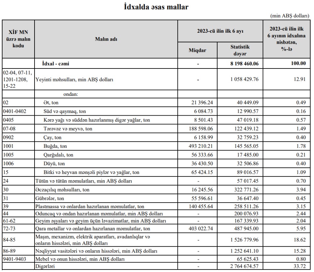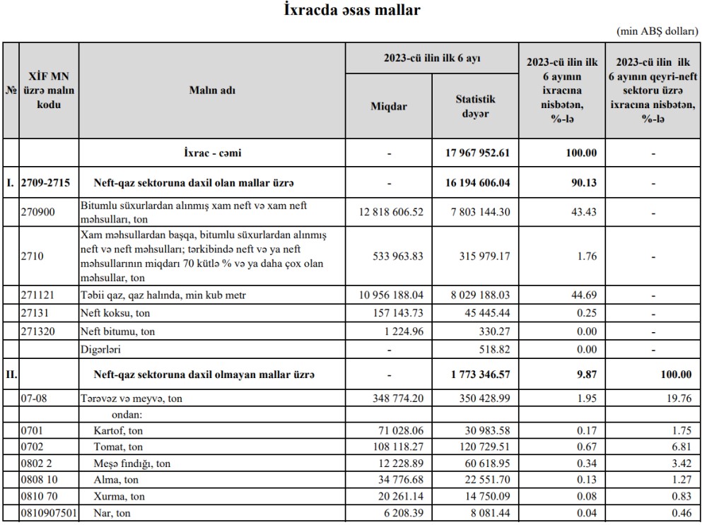 2023-cü ilin yanvar-iyun aylarında Azərbaycanın ən çox ixrac və idxal etdiyi mallar.