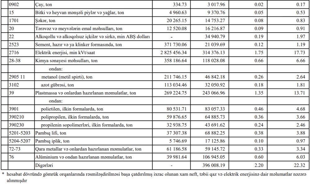 Azərbaycanın ən çox ixrac və idxal etdiyi mallar - YENİ SİYAHI