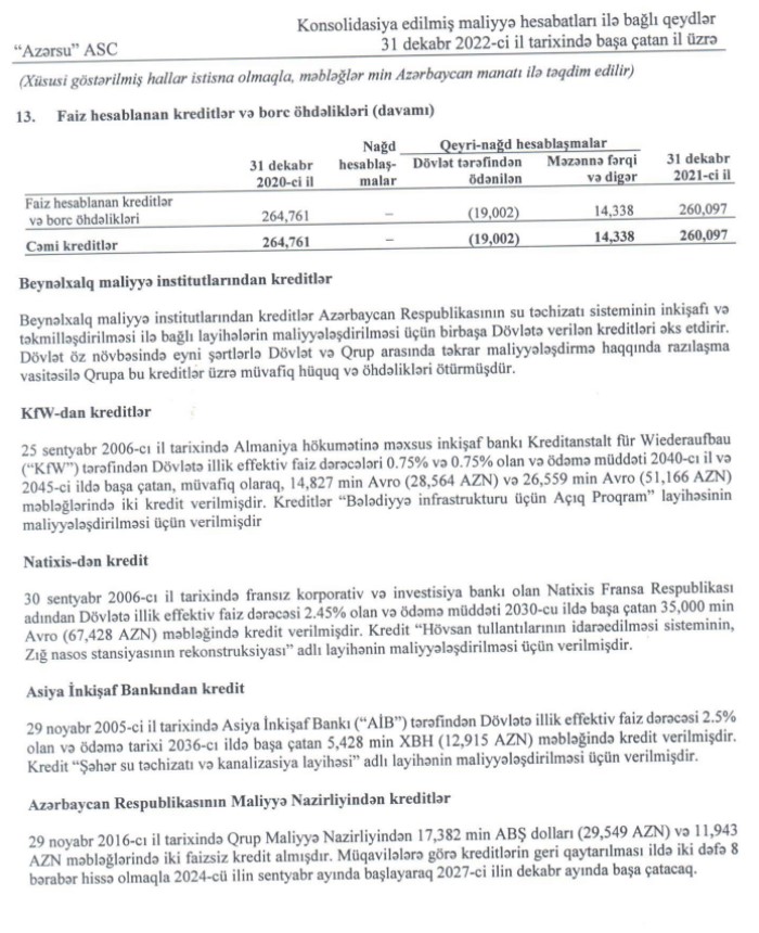 Ötən ilin sonunda "Azərsu" ASC-nin KfW, Natixis, AIB və Maliyyə Nazirliyinə borcu olub.