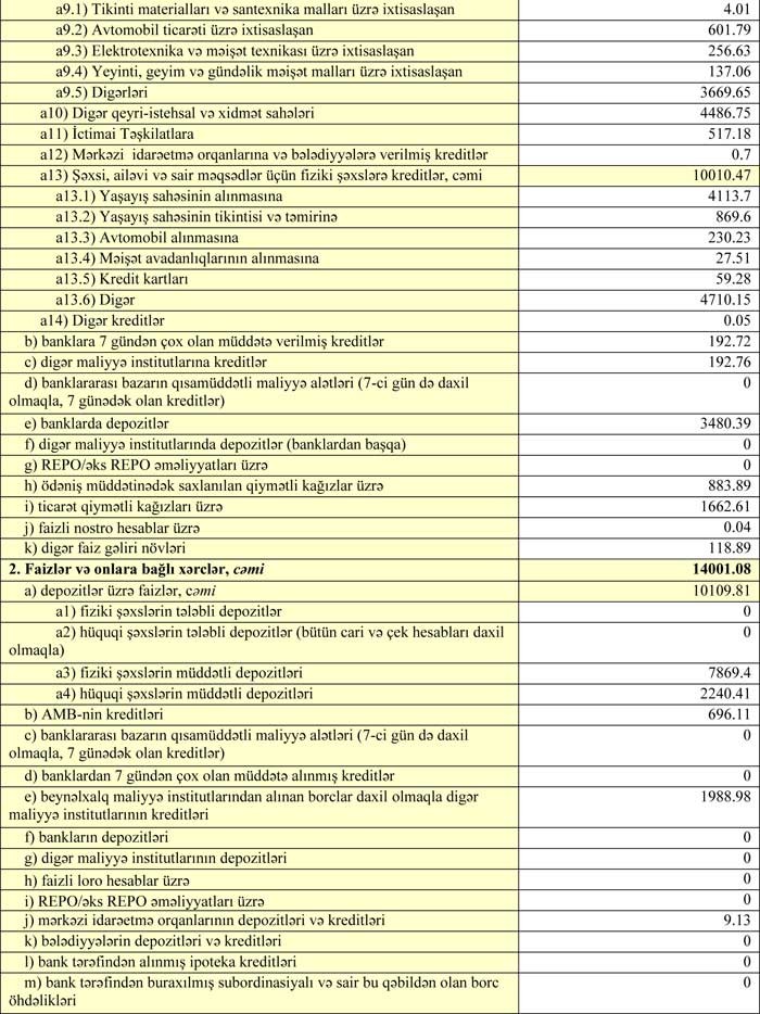 Müqayisə olunan dövrdə Bankın müştərilərə verdiyi kreditlər 1 milyard 274 milyon 525 min manatdan 1 milyard 338 milyon 869 min manata, depozitlər isə 1 milyard 98 milyon 899 min manatdan 1 milyard 230 milyon 598 min manata qalxıb.
