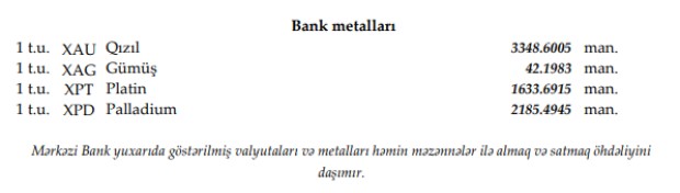 Rəsmi məzənnələr açıqlandı