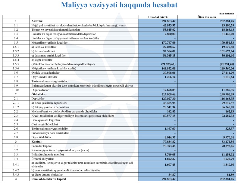 "AFB Bank" son maliyyə vəziyyətini açıqladı