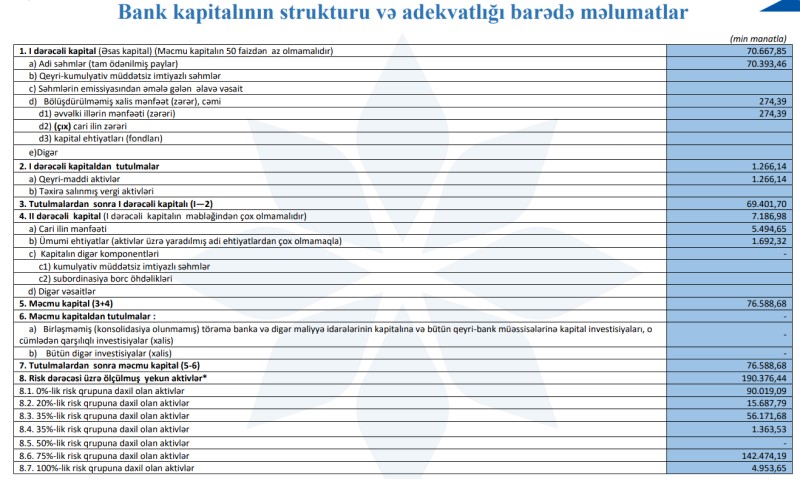 30 İyun 2023-cü il tarixində "AFB Bank" 76 milyon 589 min manat məcmu kapitala malik olub.
