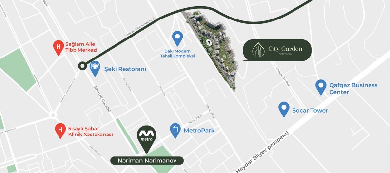 Onu da qeyd edək ki, Şəki dairəsi deyə tanınan ərazidən başlayaraq “City Garden Narimanov”a uzunluğu 1 km-ə yaxın yol çəkilir. Bu yol ilə mənzilinizə daha rahat və tez çatacaqsınız.