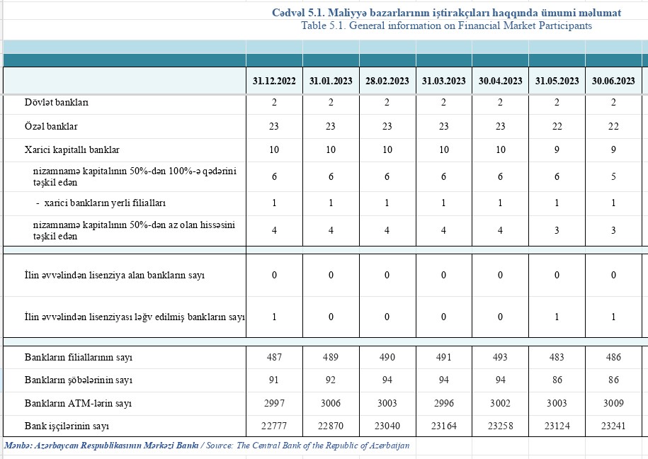 2023-cü ilin ilk 6 ayında (yanvar-may) Azərbaycanda bank işçilərinin sayı 464 nəfər artıb.