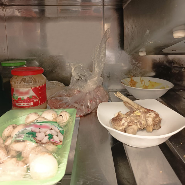 Baxış zamanı ictimai iaşə müəssisəsində digər istehsalçılara məxsus butulkalarda qablaşdırılmış, üzərində tərkibi, istehsal və son istifadə tarixləri göstərilməyən kompotlar, mənşəyi məlum olmayan süd məhsulları aşkarlanıb. Həmçinin qida məhsullarının çirklənmə riski yaradacaq şəraitdə, mal qonşuluğu qaydalarına riayət olunmadan saxlanıldığı müşahidə olunub.