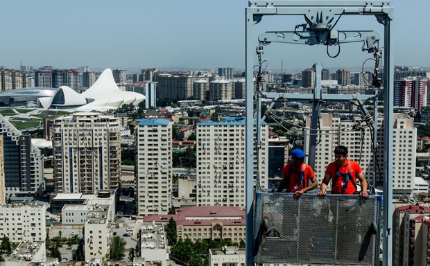 Bakı küləklər şəhəri olduğundan yayın ən isti günündə belə binanın damında küləklə qarşılaşdıq. Müsahiblərim deyir ki, hündür binaların şüşələrinin təmizlənməsi zamanı əsas çətinlik də elə küləklə bağlıdır.