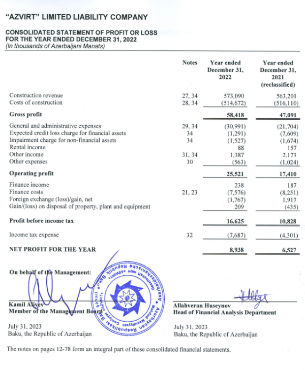 Yol və hava limanı tikən iri Azərbaycan şirkəti 573 milyon gəlir, 9 milyon xalis mənfəət əldə edib
