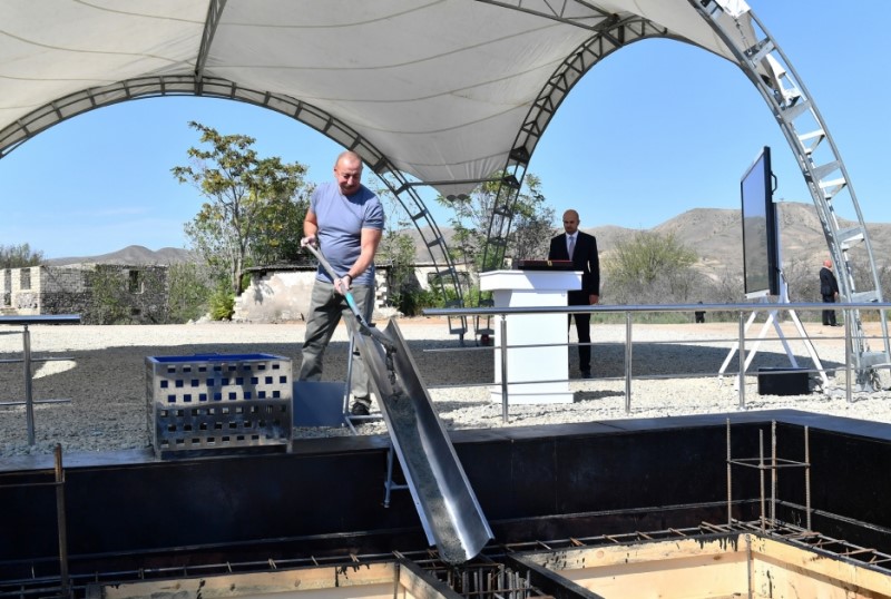 Prezident İlham Əliyev Zəngilan kəndinin təməlini qoyub.